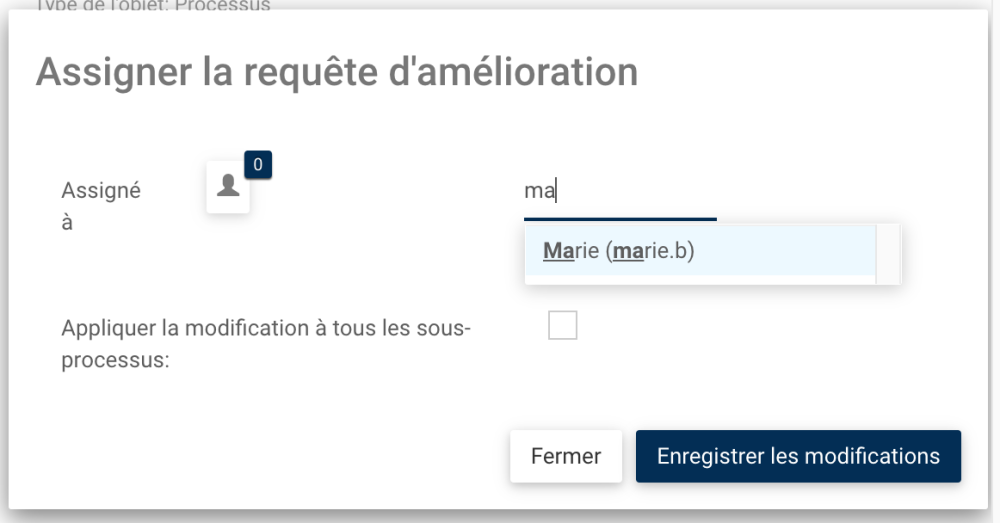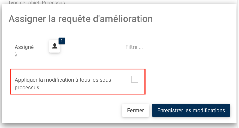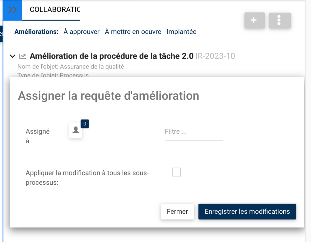 4. Cliquez sur la case pour assigner la requête d’amélioration