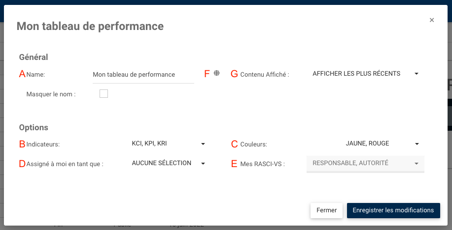 Suivez les instructions ci-dessous pour personnaliser le widget « Mon tableau de performance ».