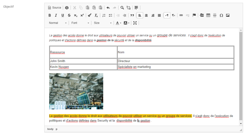 Ce champ de texte permet un formatage supplémentaire tel que :