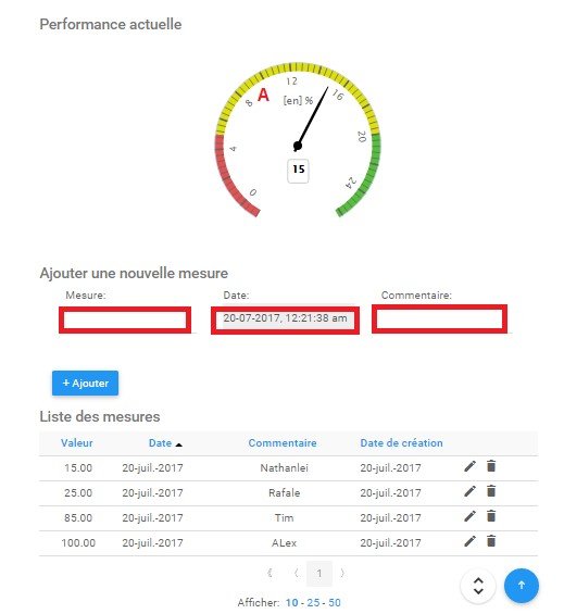 5. La mesure de performance sera ajoutée dans le champ ci-dessous dans la “Liste des mesures” avec la dernière mesure précédente affichée dans le graphique ci-dessus.