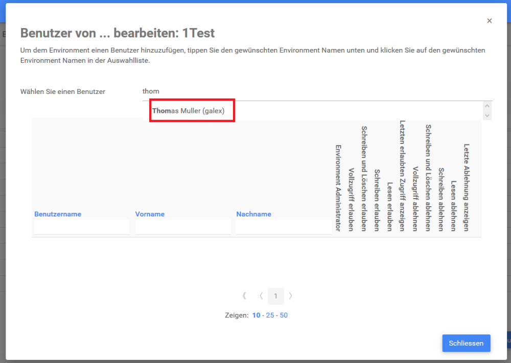 3. Geben Sie den Namen des Benutzers ein, den Sie der Umgebung hinzufügen möchten. “Doppelklicken” Sie auf den Benutzer, um das Hinzufügen abzuschließen.