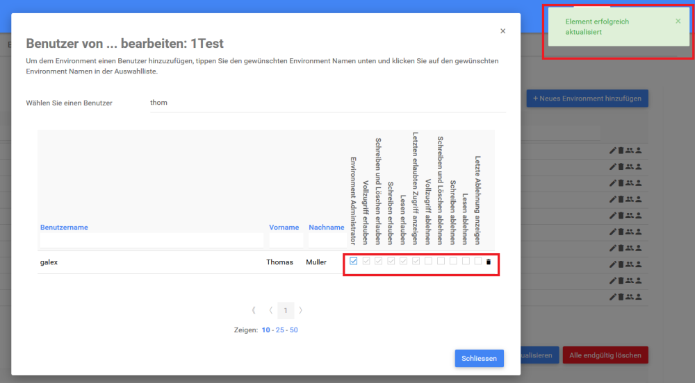 | Schreiben Löschen Erlauben | Der Benutzer darf in der Umgebung schreiben und löschen |