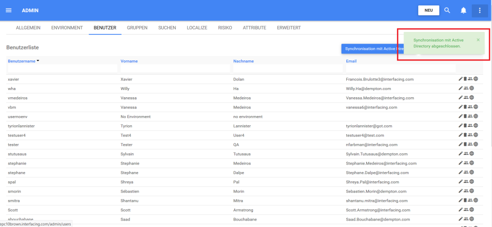 - Der Systemadministrator erhält eine zweite Benachrichtigung in grün, dass die Synchronisation abgeschlossen ist.