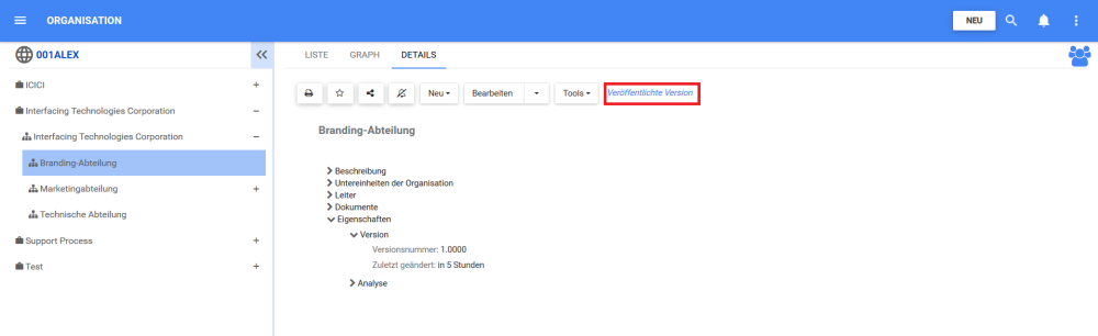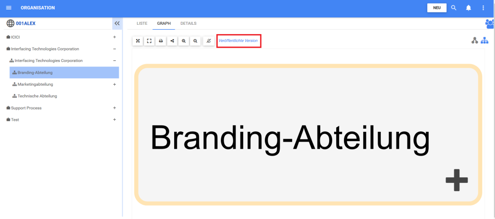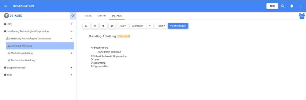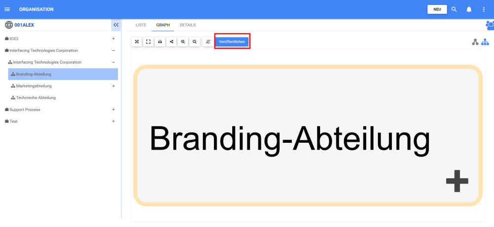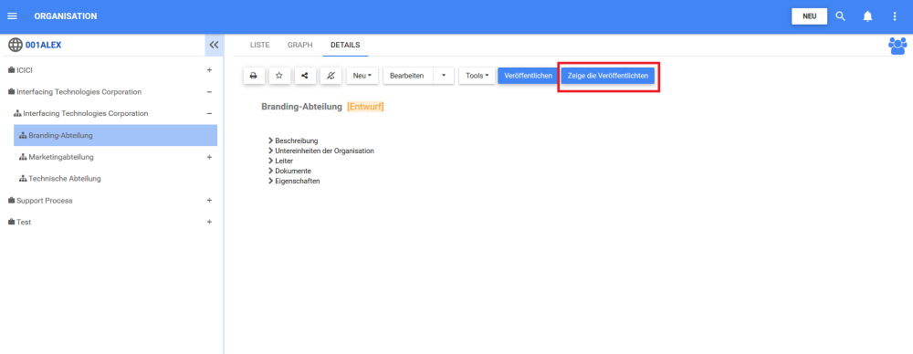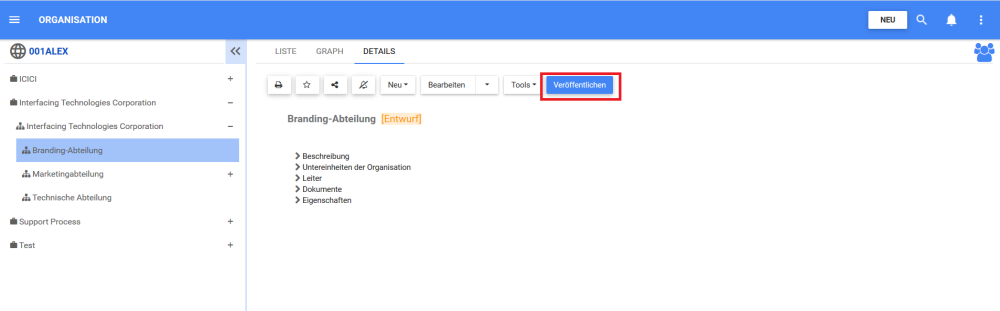 - Die Publish-Taste steht für Entwürfe von Objekten sowohl auf der Registerkarte Graph als auch auf der Registerkarte Details zur Verfügung.