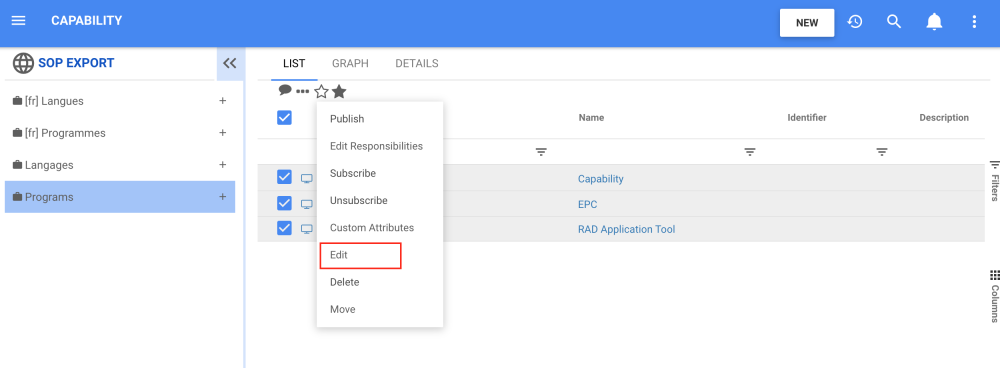 1. Navigate to the list view of a Capability module.