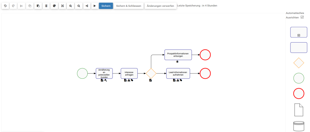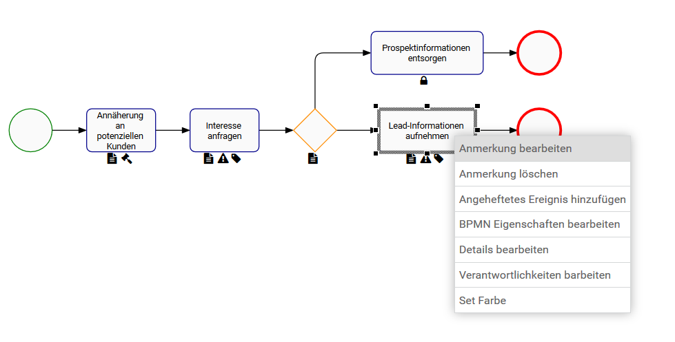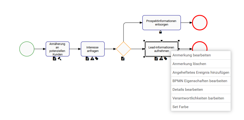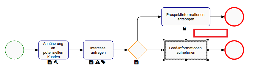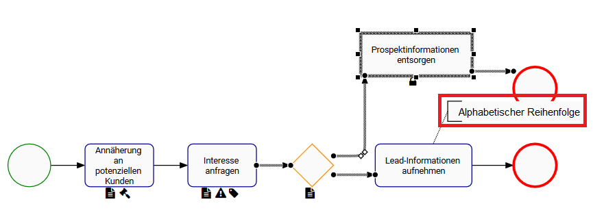 Anmerkungen ermöglichen es dem Web Modeler, zusätzliche Strömungsteile der Form zu beschreiben.