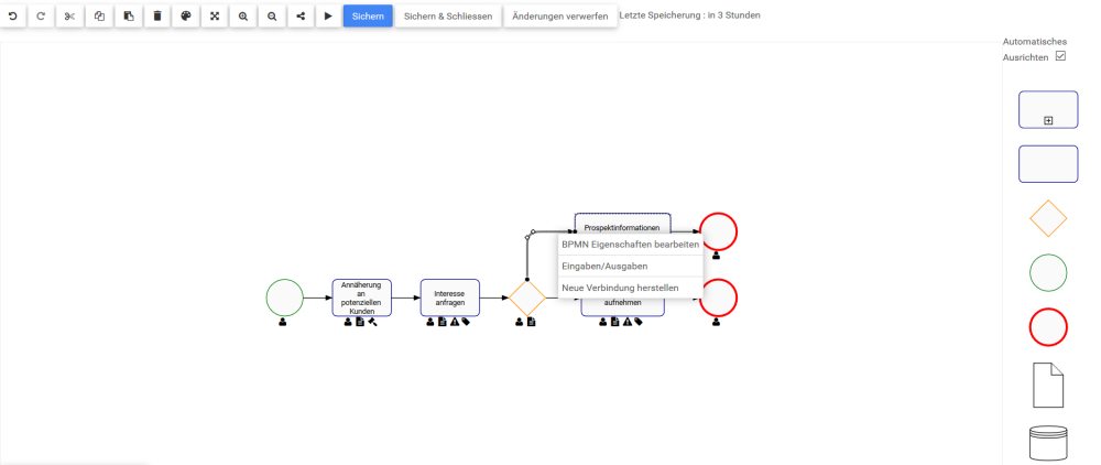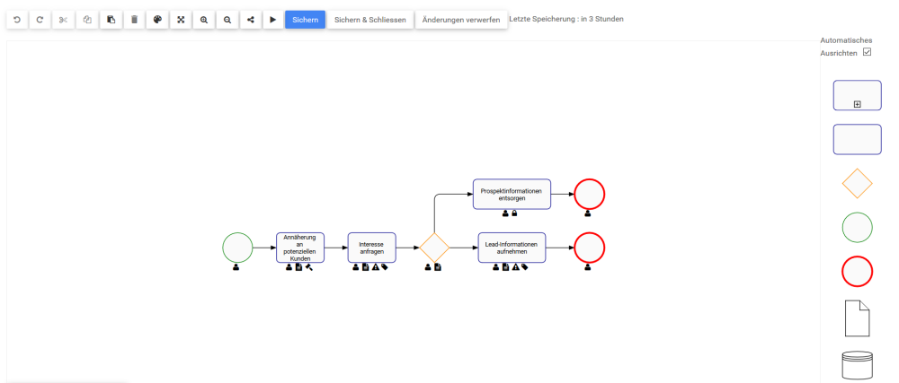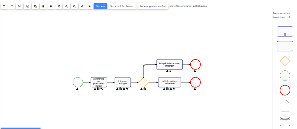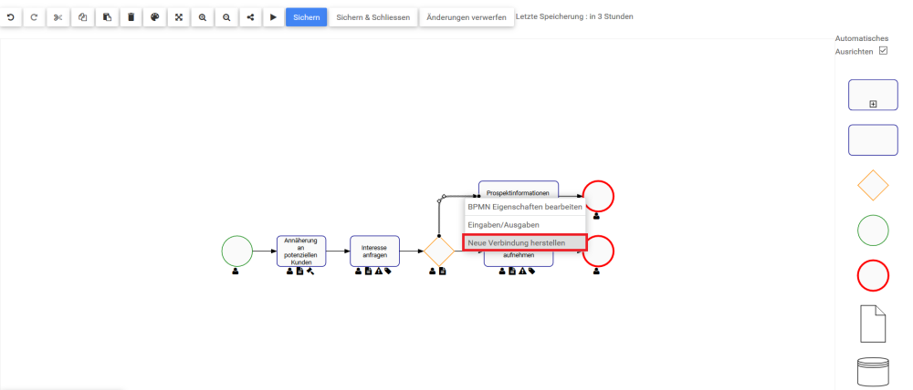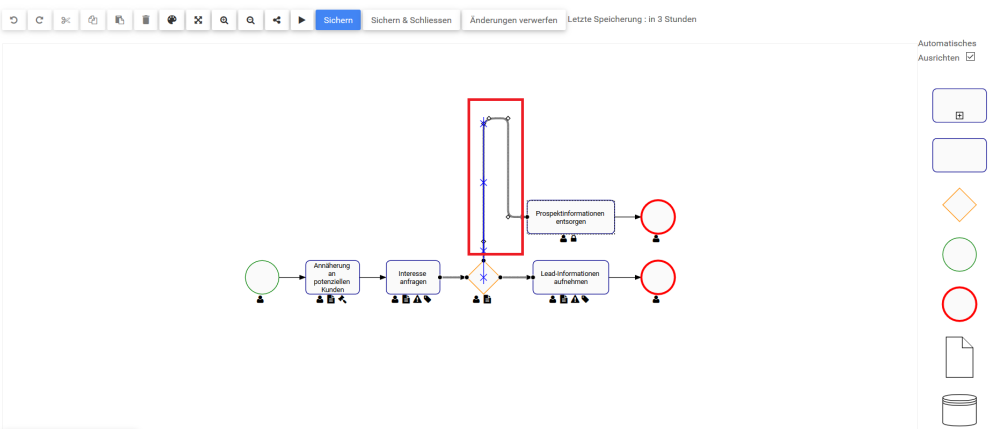 Benutzer können Prozessabläufe manuell umleiten, um ihre Prozesskarten anzupassen und zu organisieren.