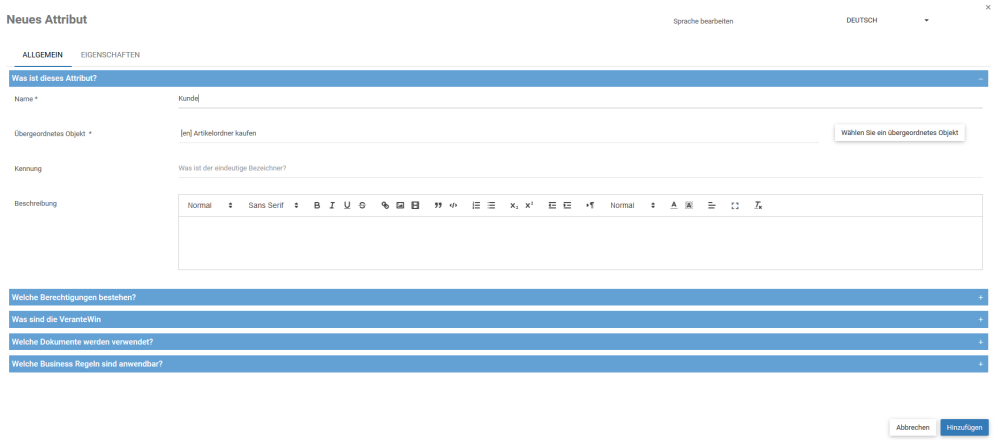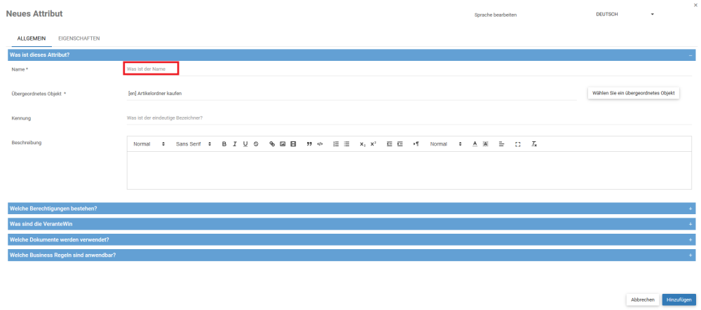 Anweisungen zum Erstellen eines neuen Attributs finden Sie im Abschnitt Objekte erstellen .