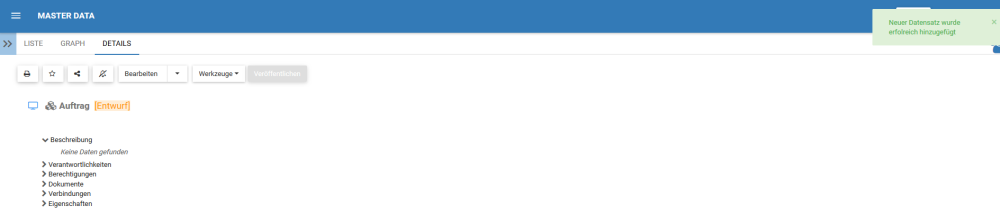 - Das neue Attribut “Kunde” befindet sich nun im Ordner “Bestellung von Produkten und Dienstleistungen”. Dieses Attribut ist derzeit ein Entwurf. Um zu erfahren, wie man Stammdatenobjekte veröffentlicht, klicken Sie bitte hier