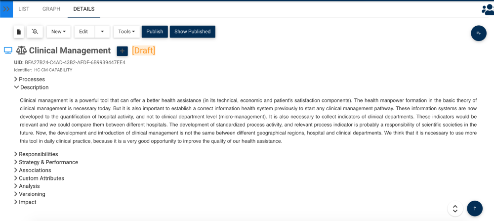 The Details section is where you will find details about the capabilities you are observing. This rich text area allows for the display of all additional details that has been uploaded regarding the item in particular. These details provide users with all critical information about items that has been uploaded by EPC Modelers.