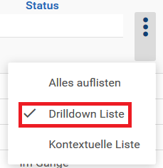 | 3. Kontextuelle Liste | Eine Listenansicht, in der 1-stufige Ebene unterhalb des ausgewählten Elements aufgelistet ist |