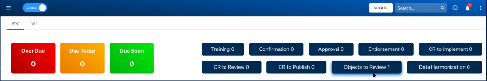 - Click on the “Objects to Review” button to filter pending review tasks.
