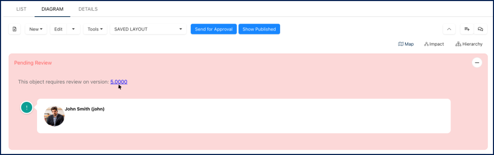 - If applicable, toggle to the published version of the object to ensure the review is conducted on the version visible to business users.