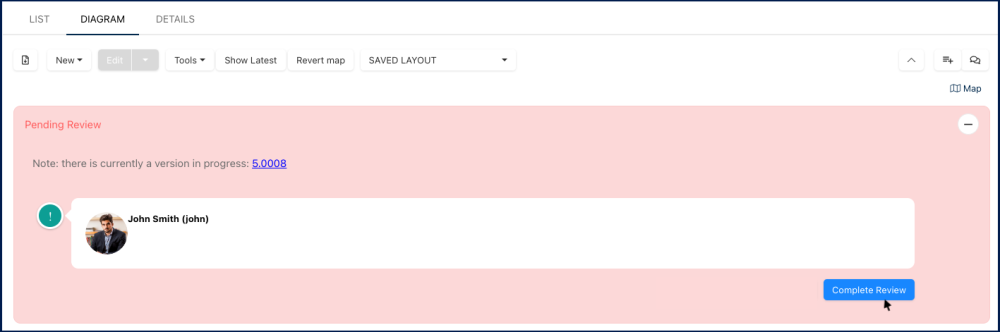 - Once the review is complete, click on “Complete Review” button within the action box to finalize the cycle.