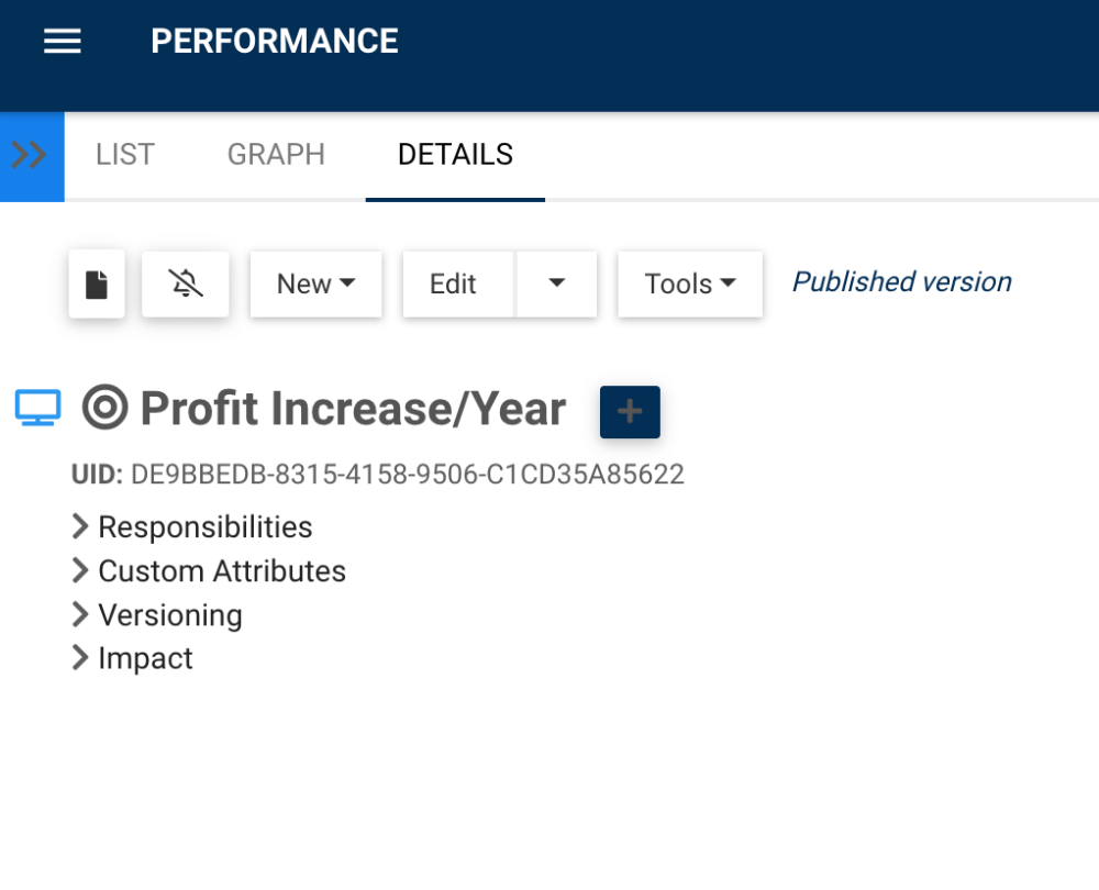 The details section is where users can see all information about items, in addition to the object’s node identifier (nodeId) which is the unique number assigned to that particular object, located under the name (UID).