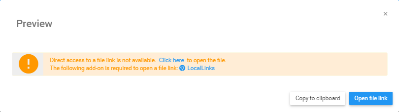 3. If the document being previewed requires an extension, this window will remind users of the necessary add-ons required (e.g. LocalLinks for Chrome) to preview the document.