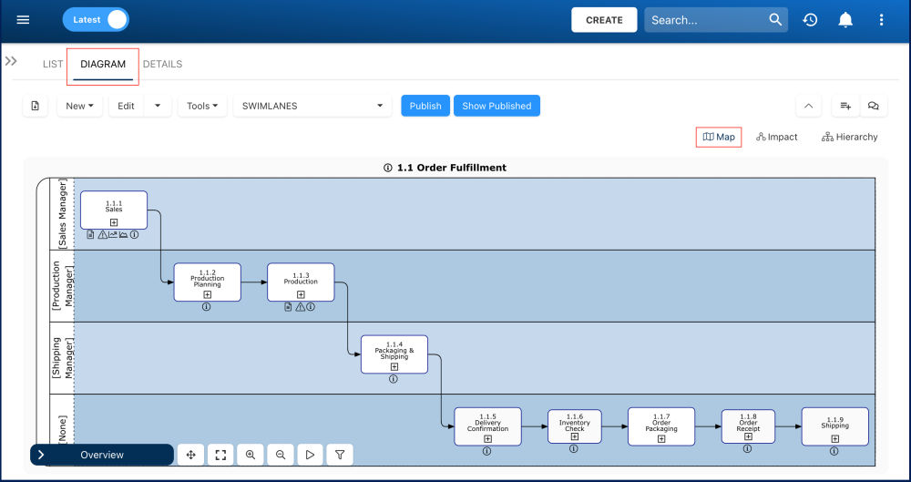- Access the Diagram section of the process and ensure you are in the Map view.