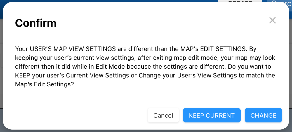- If your user settings differ from the map’s edit settings, clicking on edit will ask to confirm the configurations.