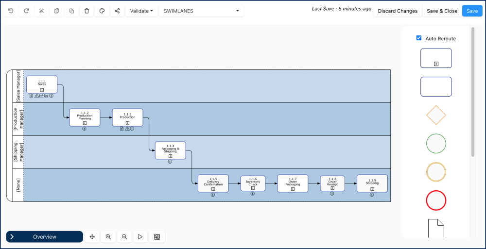 The Edit button enables Modelers to edit diagrams in EPC. This button is exclusively visible to Modelers in the toolbar. Clicking on the Edit button initiates the Edit Mode, redirecting Modelers to the Diagram Editor where they can map and edit processes.