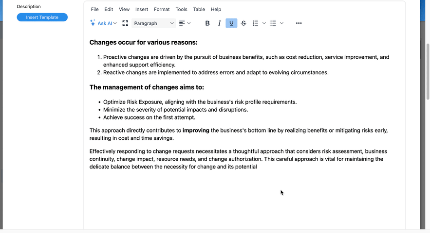 The new rich text editor facilitates effortless linking and mentioning, empowering users to seamlessly reference other objects within the text using the ‘#’ symbol, as shown below.