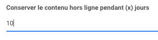 Vous pouvez ensuite accéder à Conserver le contenu hors ligne pendant (x) jours. Avec ce paramètre, vous pouvez décider pendant combien de jours le contenu est disponible hors connexion depuis la dernière mise à jour.