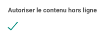 Cochez la case sous Autoriser le contenu hors ligne pour rendre le contenu disponible hors ligne. Lorsqu’elle est sélectionnée, une flèche verte apparaît.