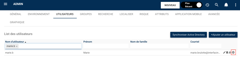 Sous l’onglet Utilisateur, les administrateurs système peuvent ajouter un Environnement aux utilisateurs. En ajoutant un utilisateur à un environnement, l’utilisateur aura accès à EPC. Les utilisateurs peuvent être affectés à un ou plusieurs environnements en fonction des besoins de l’utilisateur. Les administrateurs système peuvent afficher ces environnements dans l’onglet Environnement, ou peuvent voir à quels utilisateurs de l’environnement font partie directement dans l’onglet Utilisateurs.