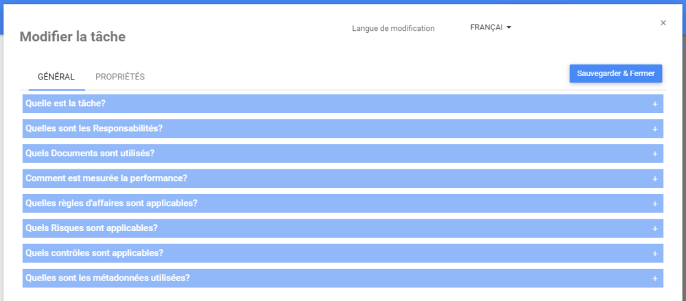 Les sections Responsabilités et Associations étant communes à de nombreux objets EPC, les instructions ont été centralisées dans la section “Associations”: {TOPIC-LINK + 12-1-5-associations} du manuel de l’utilisateur. Vous pouvez trouver des liens directs vers des instructions pour des sections spécifiques ci-dessous.