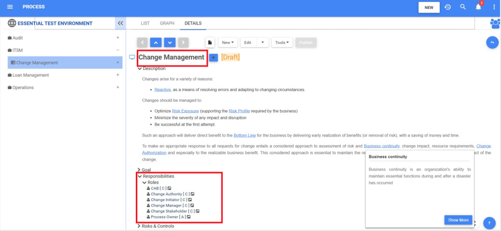 Créez un processus dans l’EPC et ajoutez les responsabilités respectives du processus.