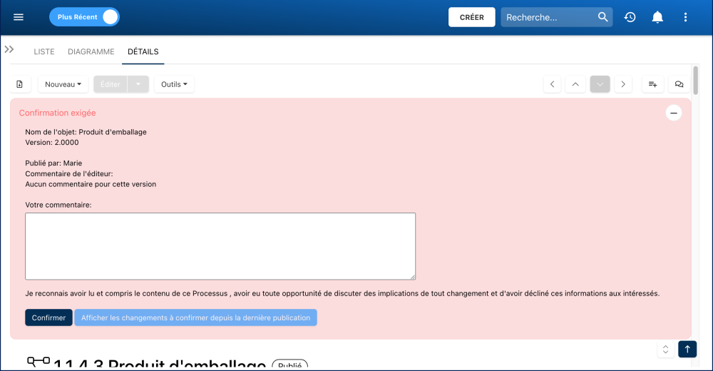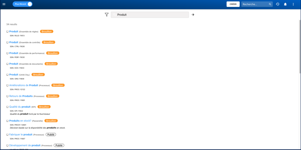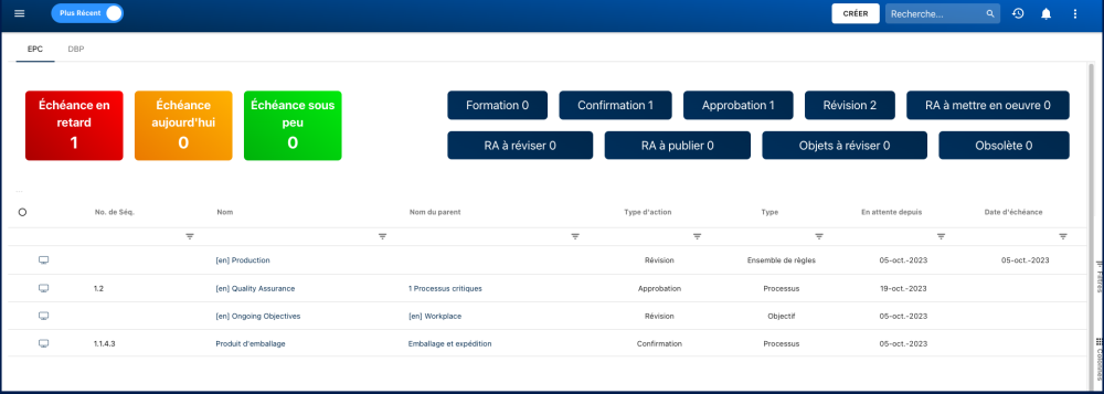 - Barre de navigation principale optimisée : Nous avons remplacé le bouton Nouveau par le bouton Créer, qui est plus intuitif et axé sur l’action. Ce changement apporte une utilisabilité accrue, en particulier pour ceux qui découvrent l’interface EPC. De plus, nous avons ajusté l’arrangement des composants de la barre de navigation principale, optimisant votre expérience de navigation.
