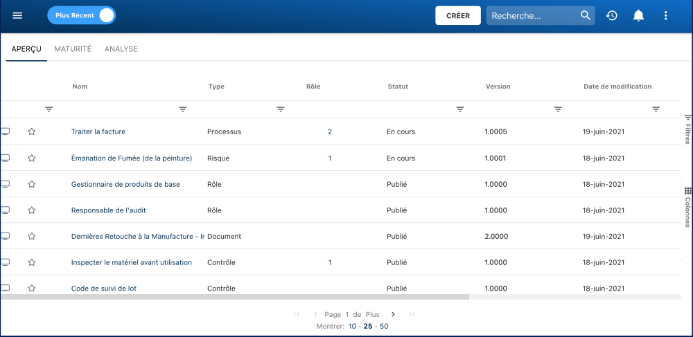 - Module de gouvernance : L’interface du module de Gouvernance a été améliorée, offrant aux utilisateurs une conception similaire à la vue ‘Liste’ que l’on trouve dans d’autres modules, offrant une expérience plus cohérente.