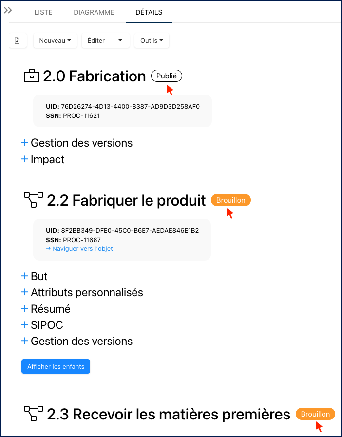 - Amélioration des Étiquettes de Statut des Objets : La vue ‘Détails’ présente des étiquettes de statut des objets améliorées, maintenant remplies de couleur et présentées sous forme ovale pour une visibilité accrue.