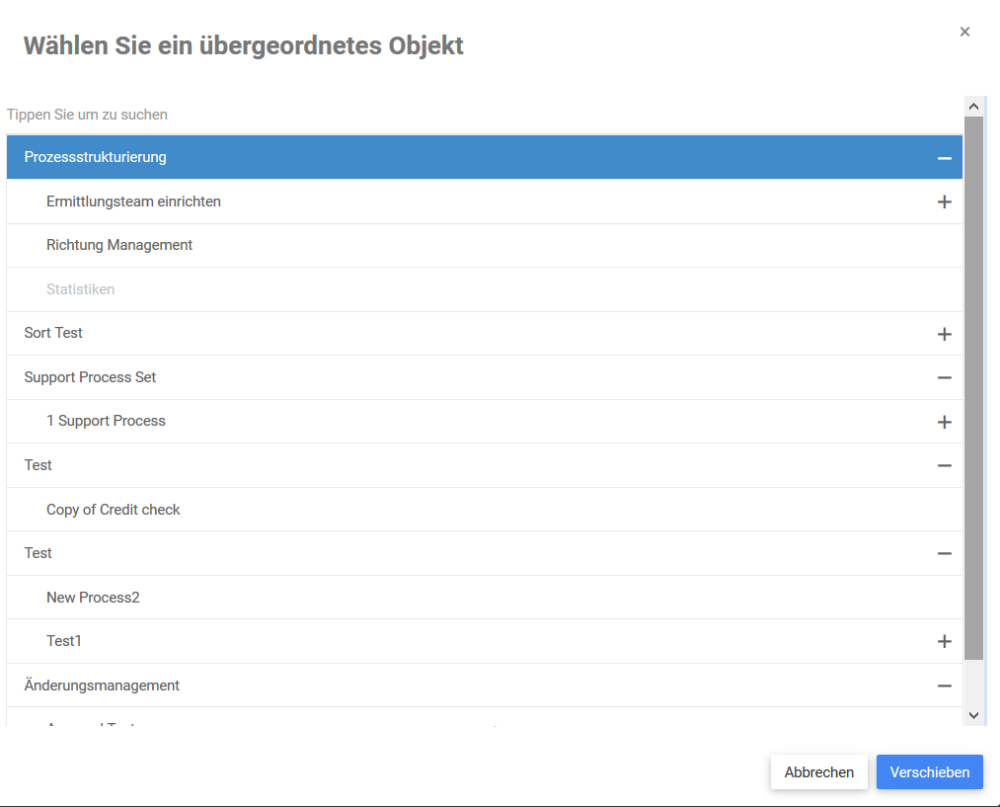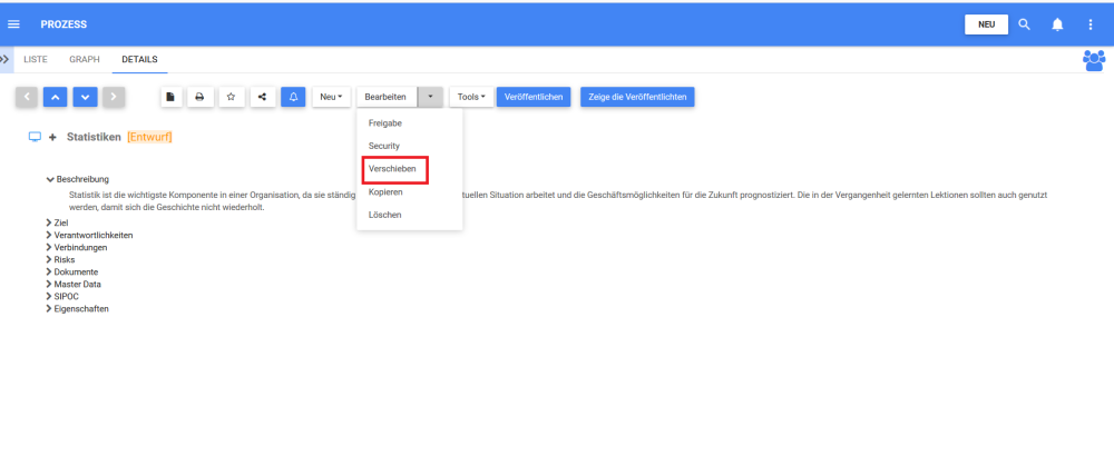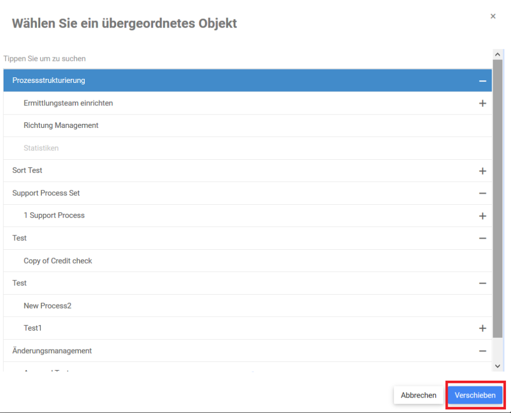 • Dokumente, Risiken, Kontrollen, Regeln, Entitäten und Attribute können nur von Ordner zu Ordner verschoben werden.