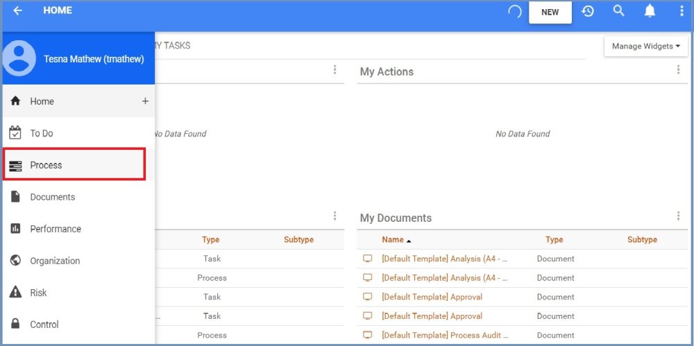1. Click on the Navigation Menu Button on the top left of your screen and navigate to the Process Module.