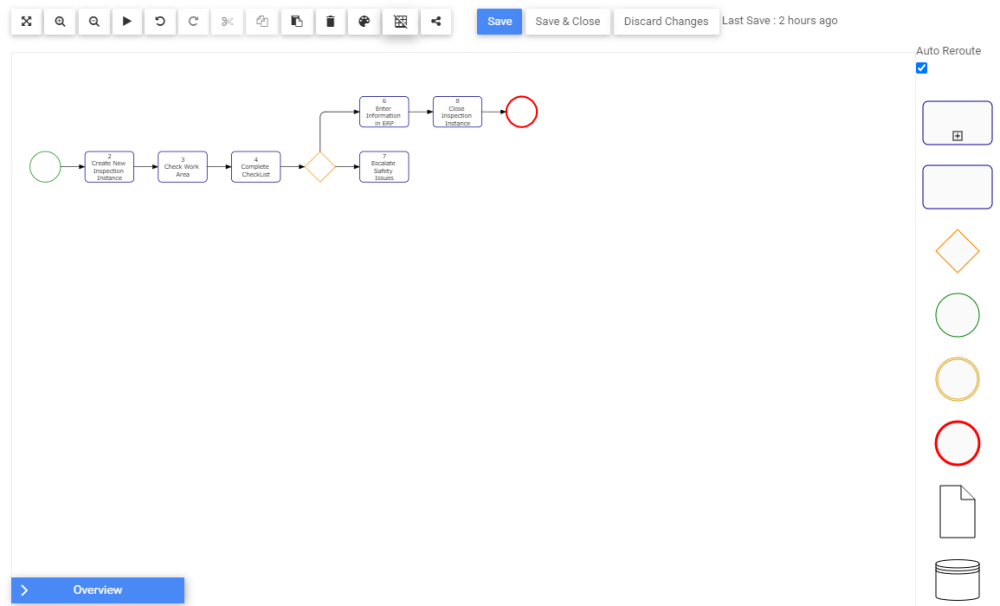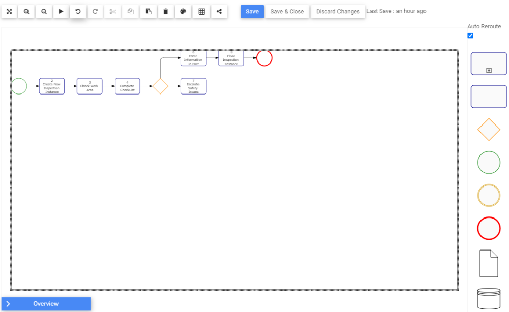 The Canvas function has been implemented to assist Web Modelers at displaying page limits on the map editing canvas and designing maps or rearranging flow objects within its page size limits. The Canvas grid feature can be accessed when Web Modelers go on Edit Mode. The Canvas button