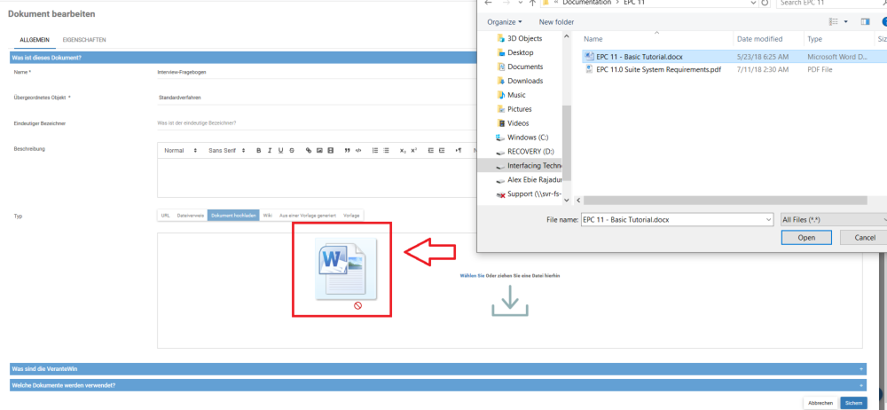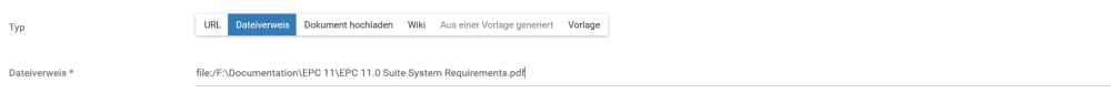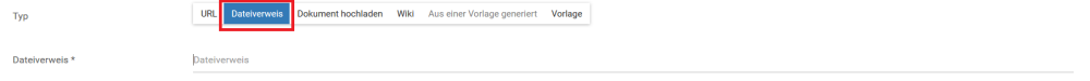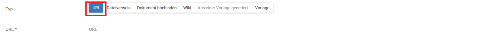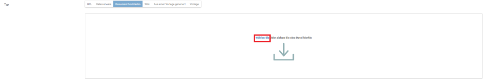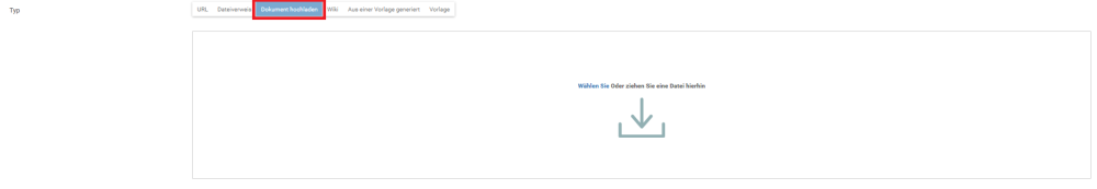 | Type | Der Typ des Dokuments (Datei, URL, Datei-Link). Nachfolgend finden Sie detaillierte Anweisungen zum Hochladen eines Dokuments. |