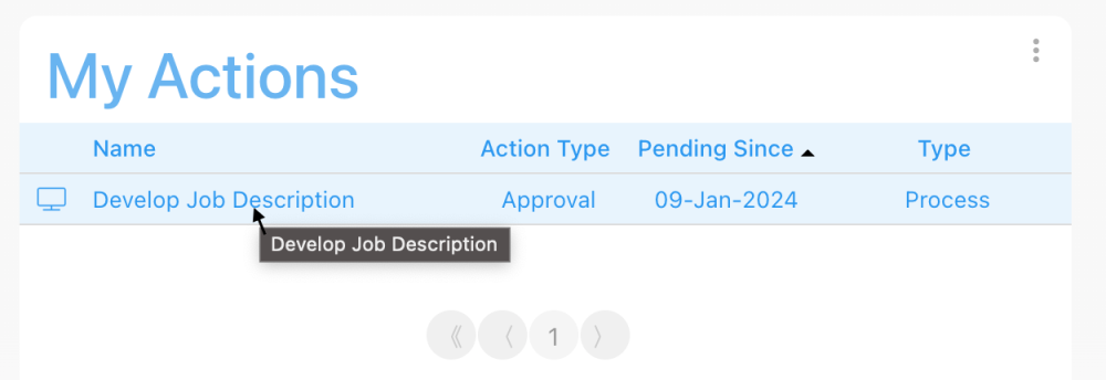 1. Under the “My Actions” Widget, click on the name of the process. This is a hyperlink, and you will be automatically redirected to the Details View of the process.