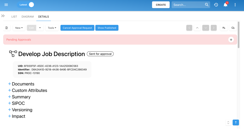 2. Under the Details View of the “Develop Job Description” process, you will see a box saying “Pending Approval.” Click on