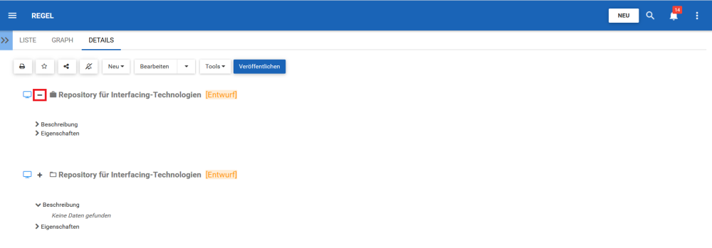 Wenn Benutzer Regelordner unter der Registerkarte Details ansehen, können Benutzer die untergeordneten Erweiterungen des Regelordners anzeigen.