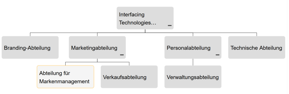 4. Sie werden zum Hierarchiegraph der Organisationseinheiten navigiert. Das gesamte Set wird bei der Erstnavigation nicht vollständig angezeigt und zeigt das ausgewählte Einzelobjekt an.