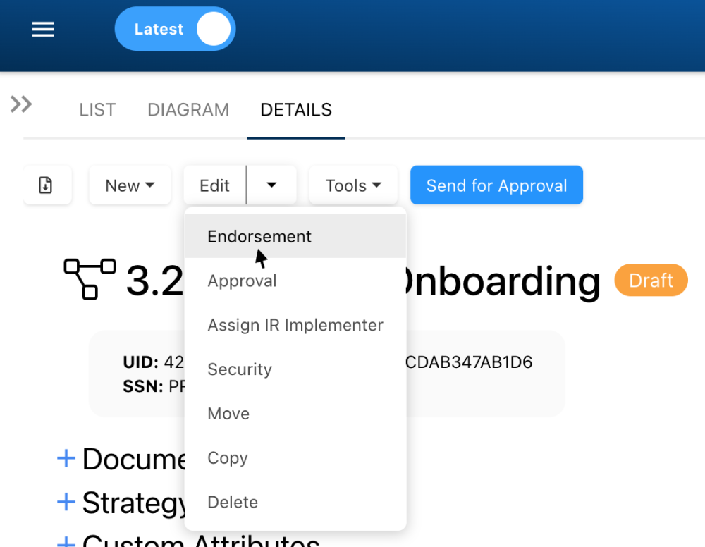 Endorsement cycles often involve multiple individuals before changes can be implemented. Business activities analyzed from various perspectives and subject to change may require multiple edits before finalization. Serving as an additional review method, the endorsement cycle typically precedes an approval cycle. Endorsers collaborate to produce an error-proof version of an activity. During the endorsement cycle, a user with appropriate security permissions may halt the cycle at any point.