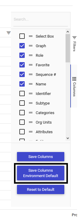 5. Click on “Save Columns Environment Default “