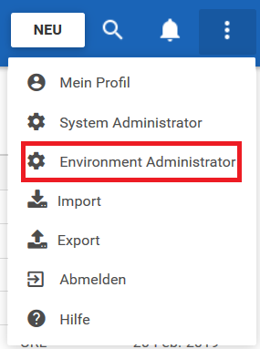 *Um zur Seite Environment Admin zu gelangen, führen Sie bitte die folgenden Schritte aus: