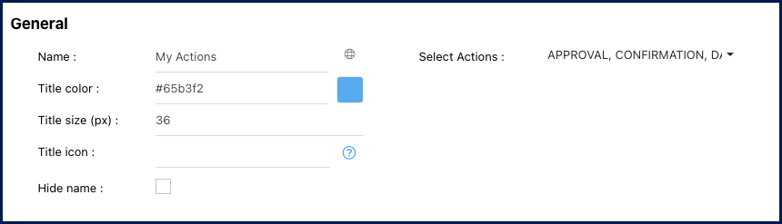 - Select Actions: To select the actions you want the widget to feature, choose from the available options: