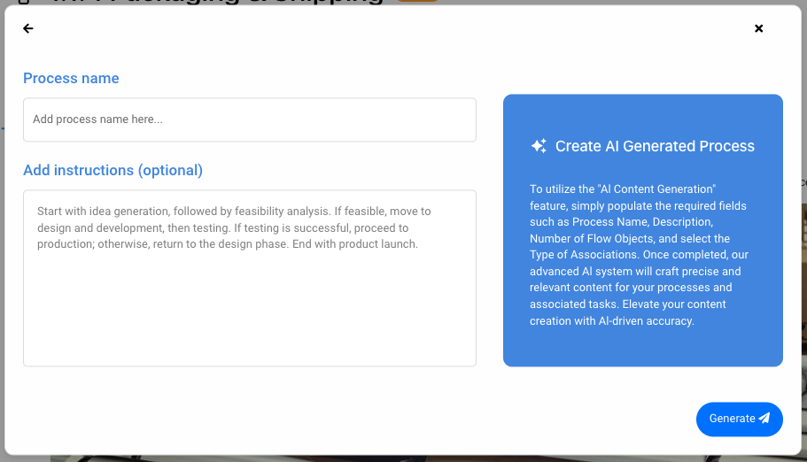 Modelers can easily automatically generate process objects with A.I. by using the right-click feature in the tree. Whether you want to create a process, a set of subprocesses or tasks, A.I. can generate relevant objects while still providing the possibility for users to manually refine the content after the creation.