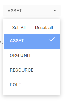 3A. The filter allows the user to select a resource, role, asset and organizational unit.
