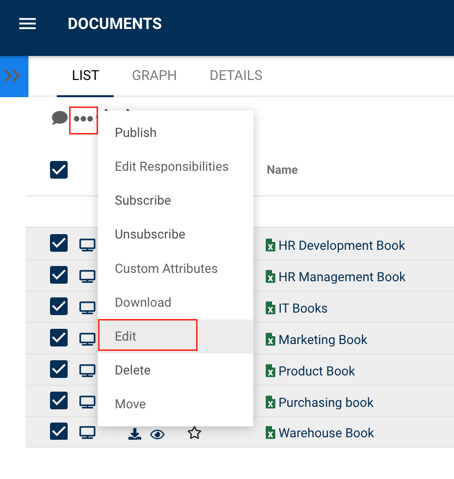 4. Select the three-dot icon on the page header and select Edit from the dropdown menu.