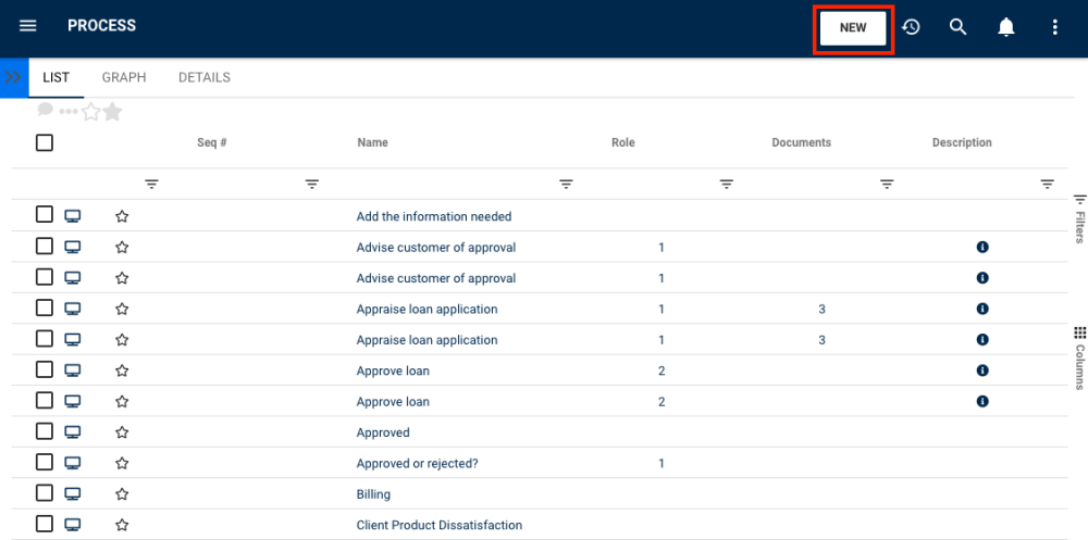 6. The new Process “Budgeting” is now on the Process tree structure. This process is currently a draft. To learn how to publish Process objects, click here