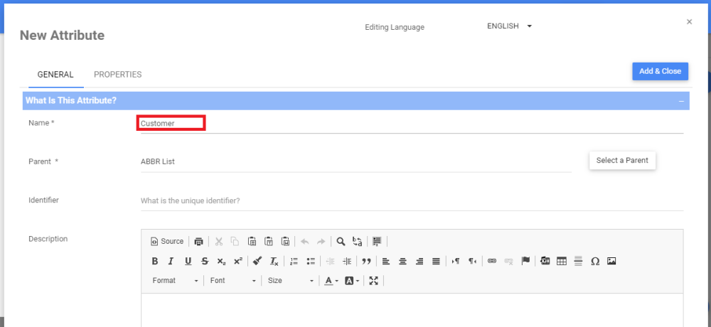 For instructions on how to create a new Attribute, see the Create Objects section.