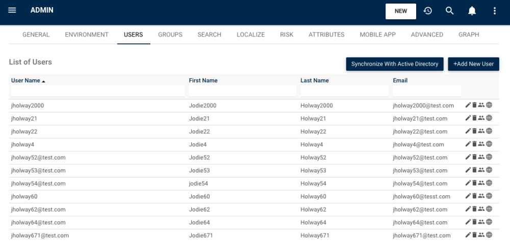 This function will find all users in your EPC system. Users are all employees, resources and stakeholders that have been created and have a profile in the system. They can be sorted by username, first name, last name and email. In EPC, System Administrators are responsible for creating and managing users and user profiles.